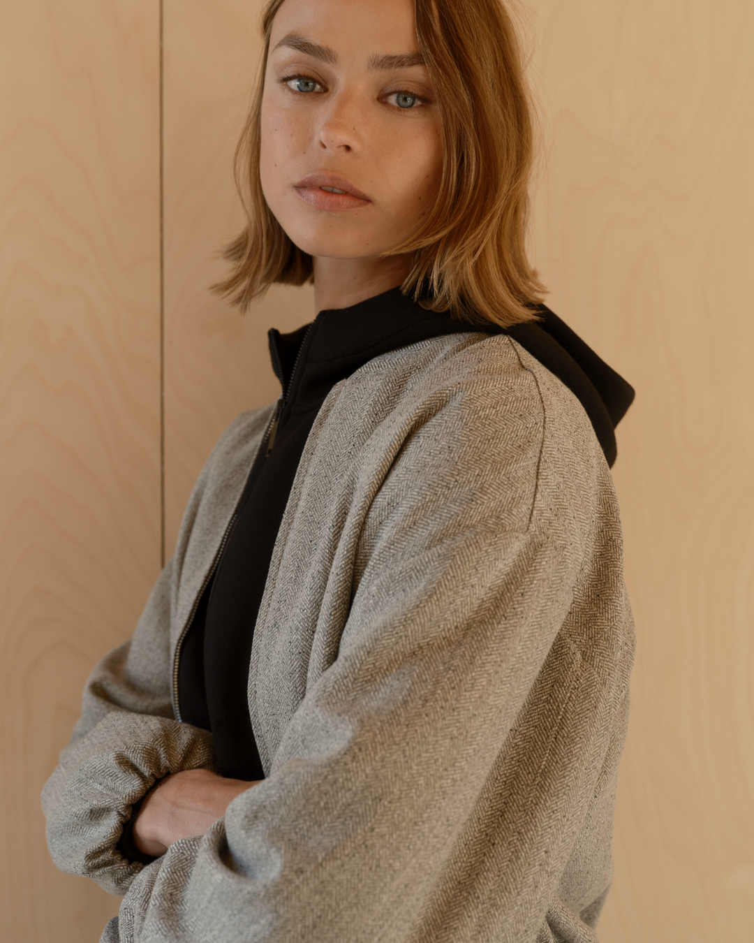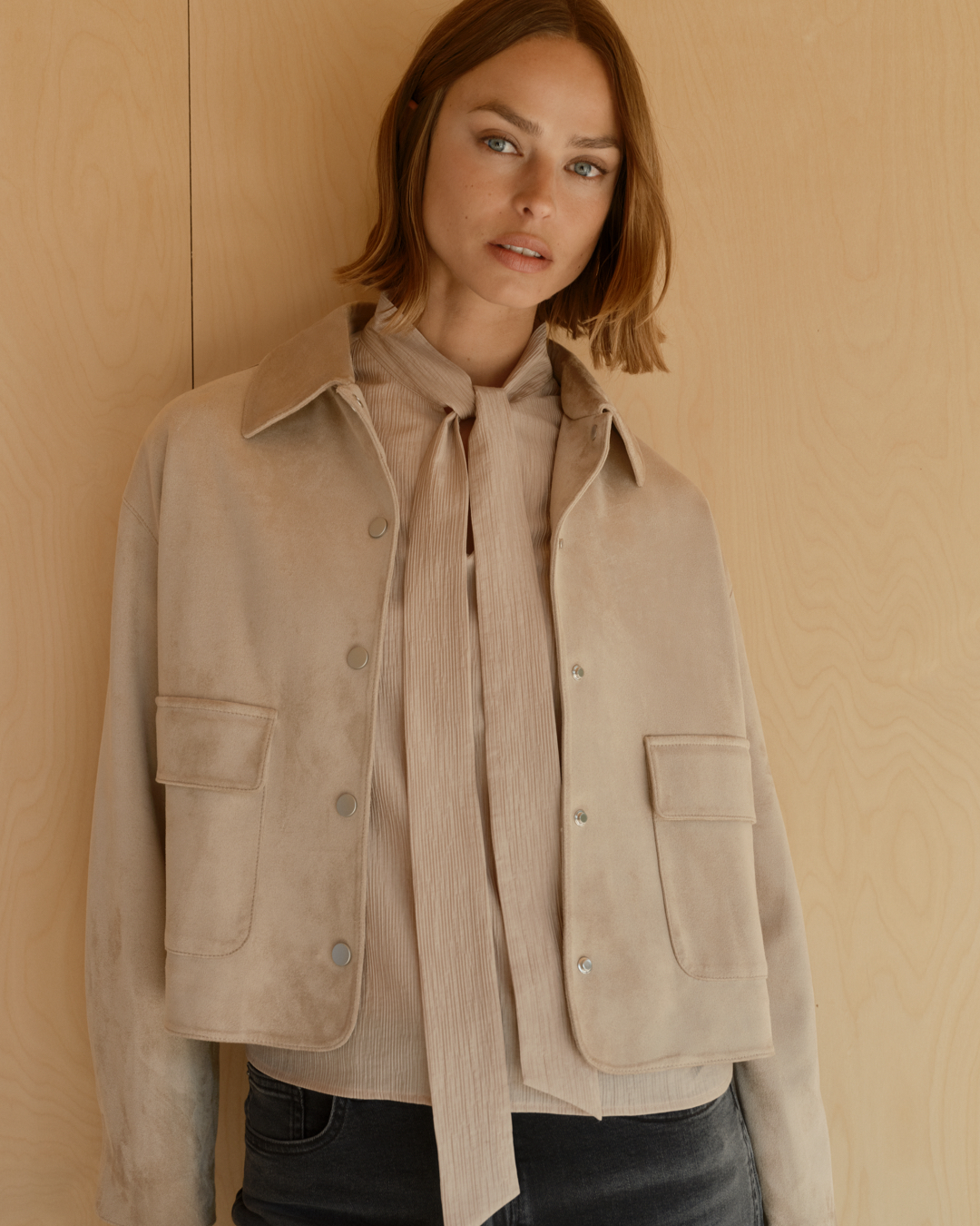 Der verkürzte Blouson und die weite Hose wirken smart und relaxed zugleich. Ideal für City Walks und Coffee Breaks – ein Look, der von morgens bis abends funktioniert. #opusfashion