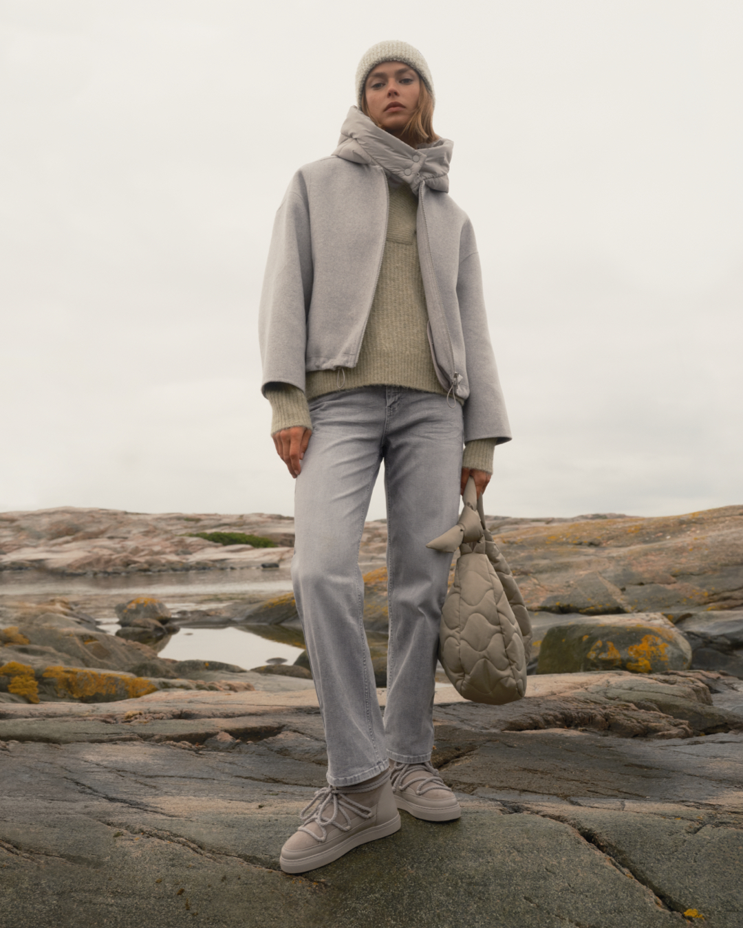 Der verkürzte Blouson und die weite Hose wirken smart und relaxed zugleich. Ideal für City Walks und Coffee Breaks – ein Look, der von morgens bis abends funktioniert. #opusfashion