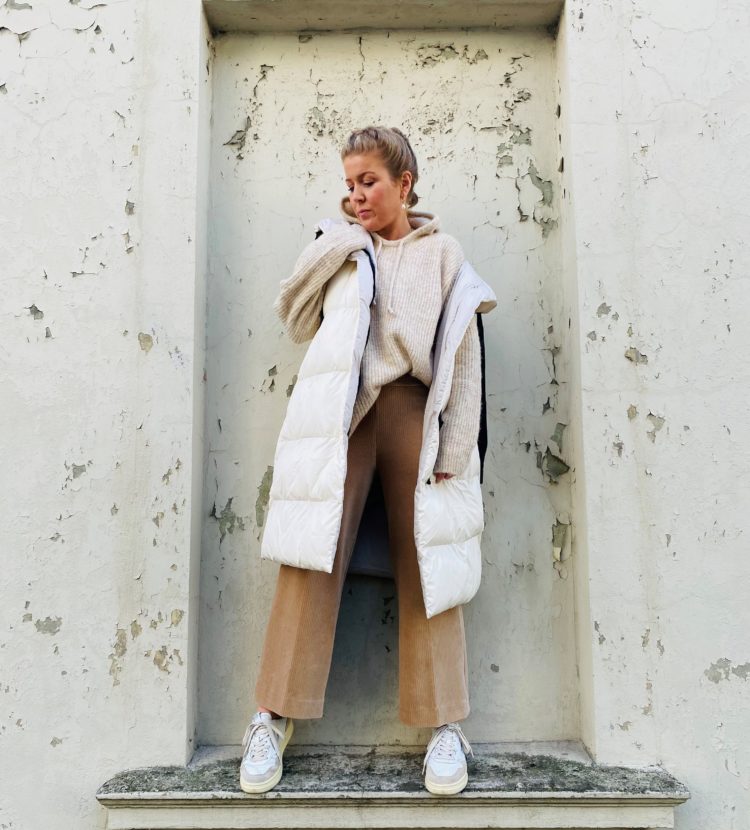 Klassische Culotte Anmutung in elastischer Form. Perfekt zu jedem Sneaker oder Boot. Wir haben heute einen kuscheligen Pulli von OPUS und die coole Longweste von SOMEDAY, welche sich von beiden Seiten tragen lässt, dazu kombiniert. Da kann der Herbst gerne kommen.