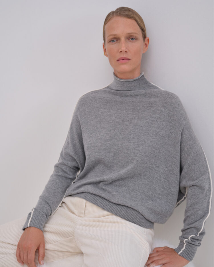 Die Konturen betonen den besonderen Schnitt des Strickpullovers und überzeugen mit super weichem Griff.