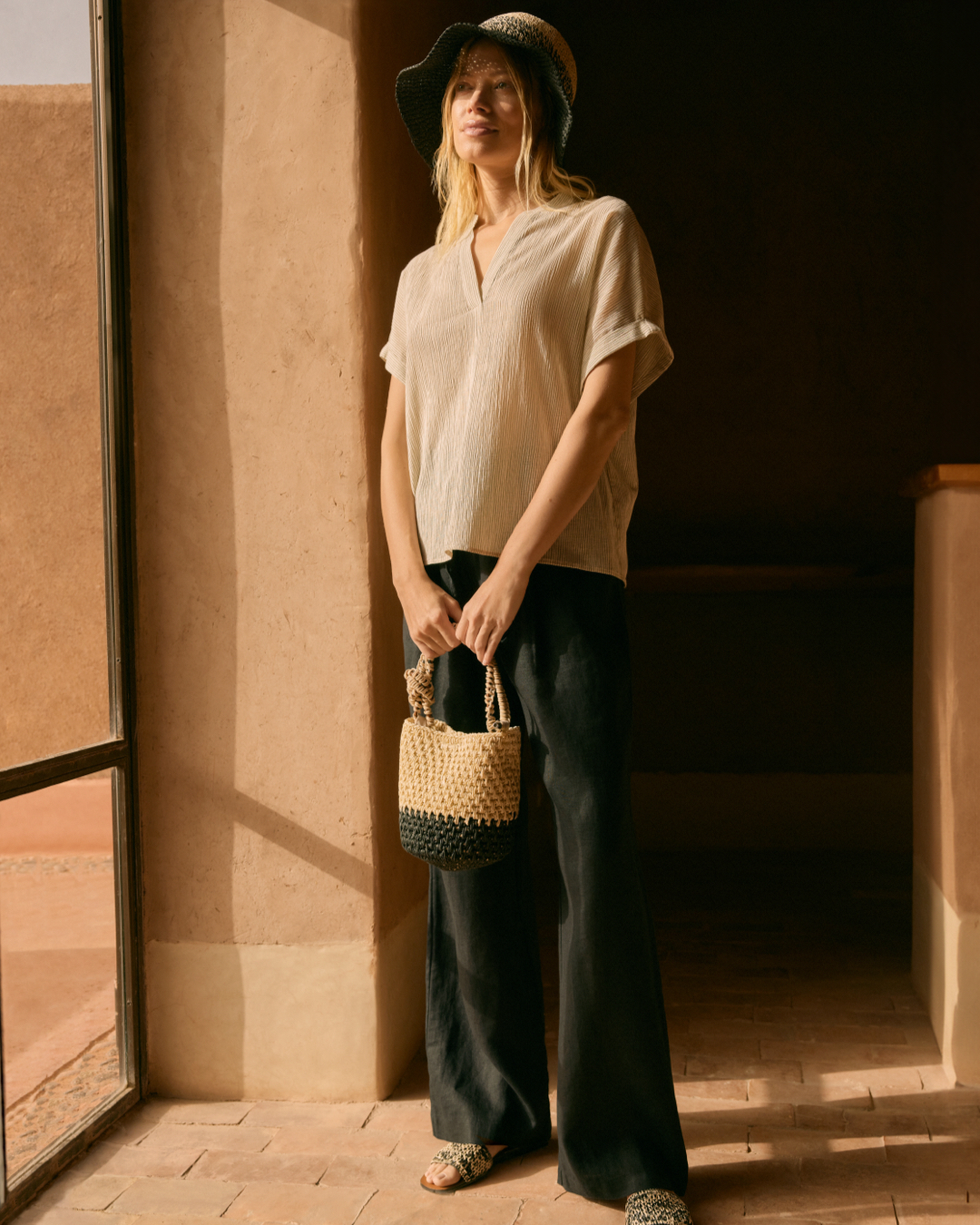 Zeitlos elegant kommt „desert journey“ mit einer Vielzahl an Schattierungen daher. Klassisches Schwarz trifft auf angesagte Neutrals. Weite Schnitte und fließende Materialien begleiten die sommerlich warmen Tage.