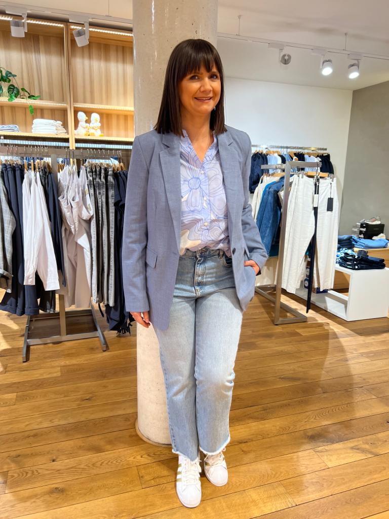 #outfitoftheday Der Blazer aus soften Viskose- Mix passt sich super der lässigen Jeans mit bodenlangen Bein an. Beides Trendpieces der Saison 👌#ootd #outfitinspo #outfitinspiration #collinsstores