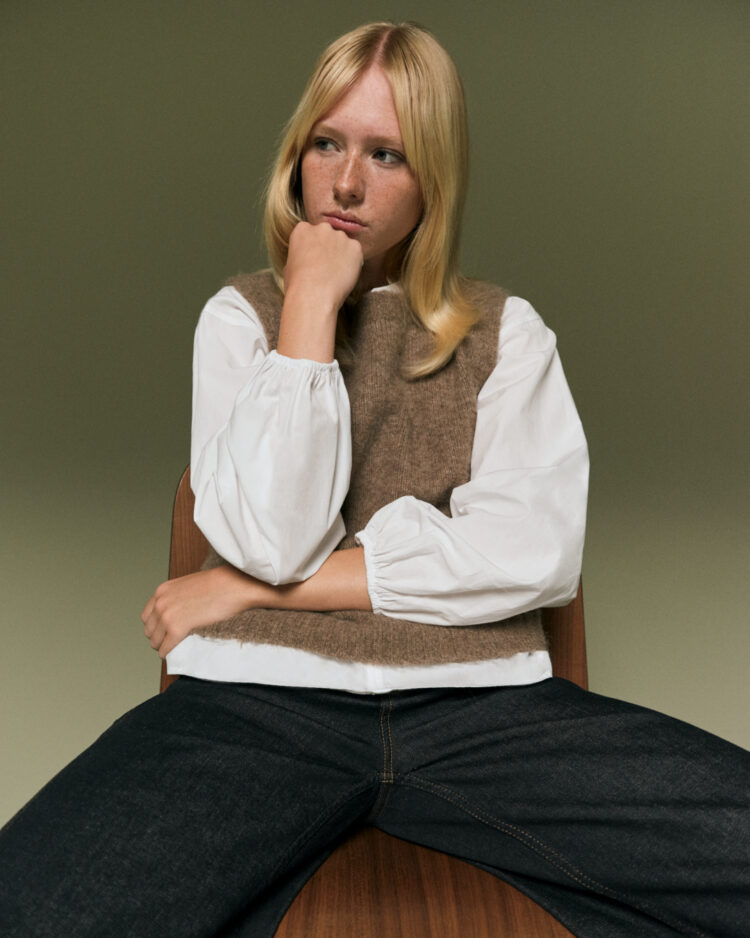 Super flauschiger Strickpullunder mit seitlichem Rippeinsatz verwöhnt mit wärmendem, nachhaltigem Garn aus Wolle und Mohairanteil. Der haarige Look macht ihn zum kuscheligen Lieblingsstück und ideal für entspannte Layering Looks.