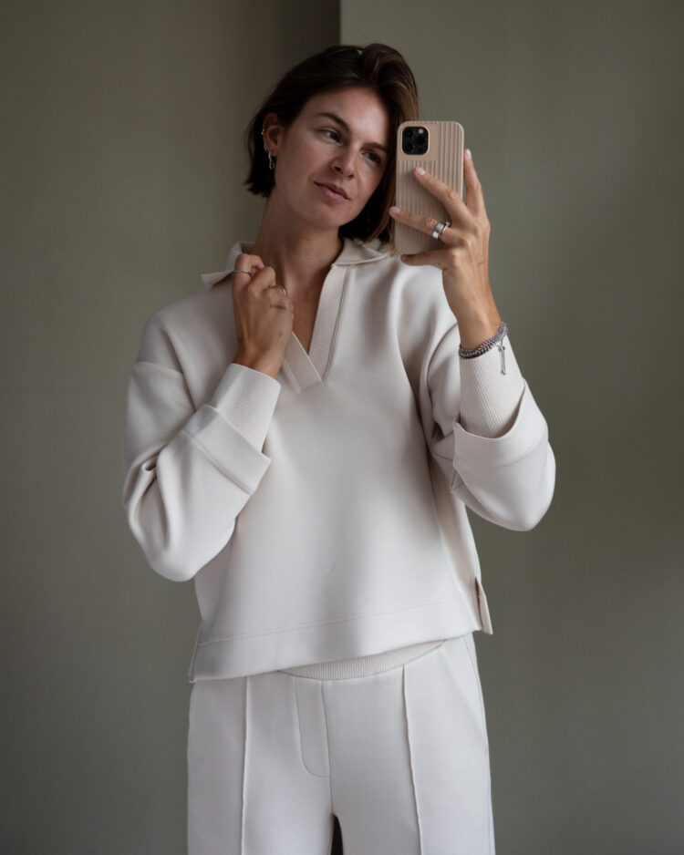 Das Sweatshirt GYHA verbindet sportiven Look, Activewear und Loungewear zu einem vielseitigen Must-have für jeden Tag. Der offene Polokragen, die weiche Sweatqualität und elastische Rippbündchen an den Abschlüssen sorgen für lässigen Komfort.