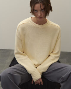 Puristischer Baumwollstricker TIRUNA mit geradem, entspanntem Schnitt überzeugt durch seinen minimalistischen Stil und den modernen Zungenraglan, dessen markante Nahtführung an der Schulter eine besondere Silhouette formt.