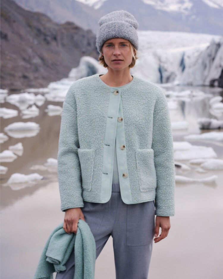 Entdecke bei uns, die neue Herbstfarbe „Pale Mint” zusammen mit zarten Grautönen. Passende Accessoires wie Mütze und Schal haben wir auch für Dich.
