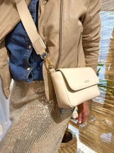 Für das #weekendoutfit habe ich, unseren neuen Paillettenrock und Jeanshemd von #opusfashion mit einer Lederjacke von Gipsy kombiniert. Dazu weiße Sneaker und einer Tasche von #seidenfelt.